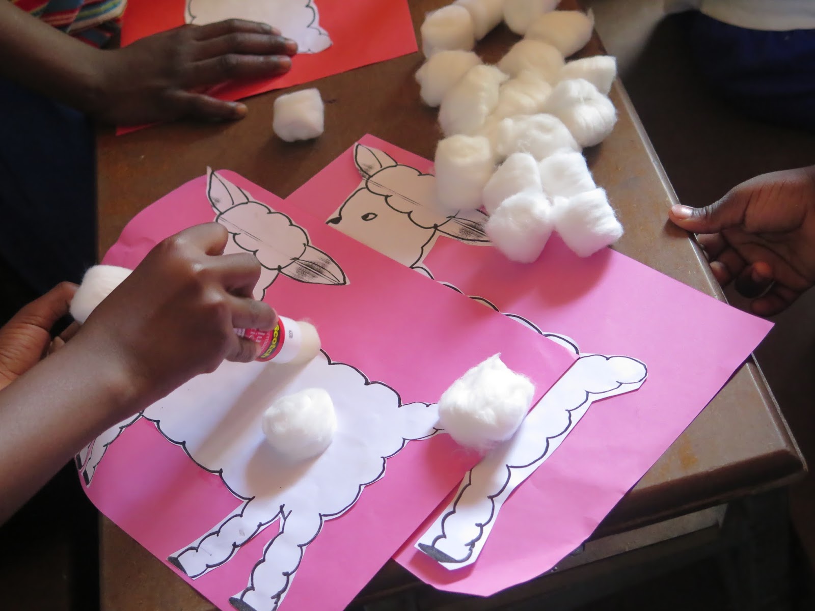 Het leukste gedeelte van deze opdracht is echter met propjes watten het lammetje bekleden.