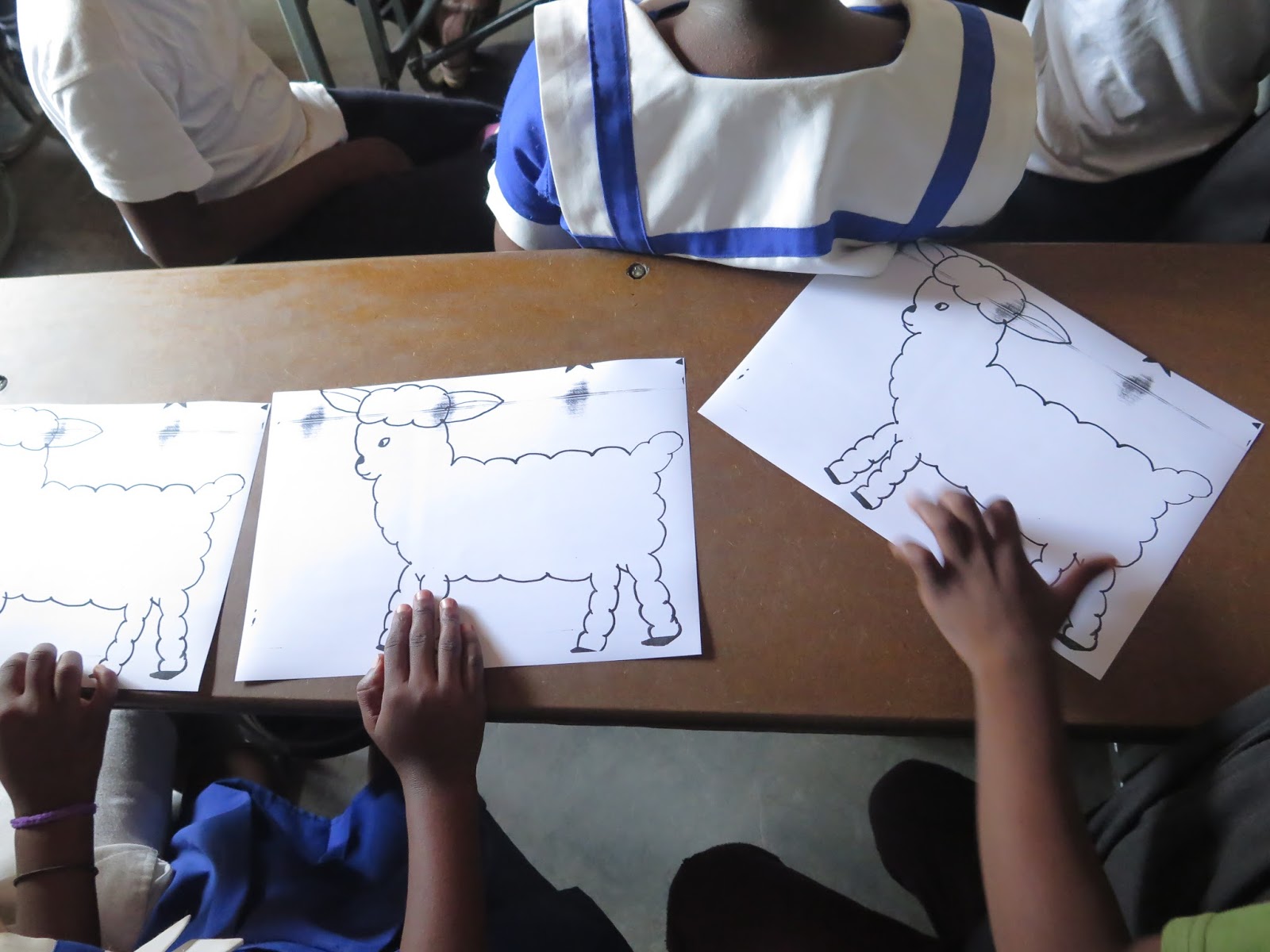 Alle kinderen kunnen nu een mooi schaapje uitknippen en op een gekleurde achtergrond naar keuze kleven.